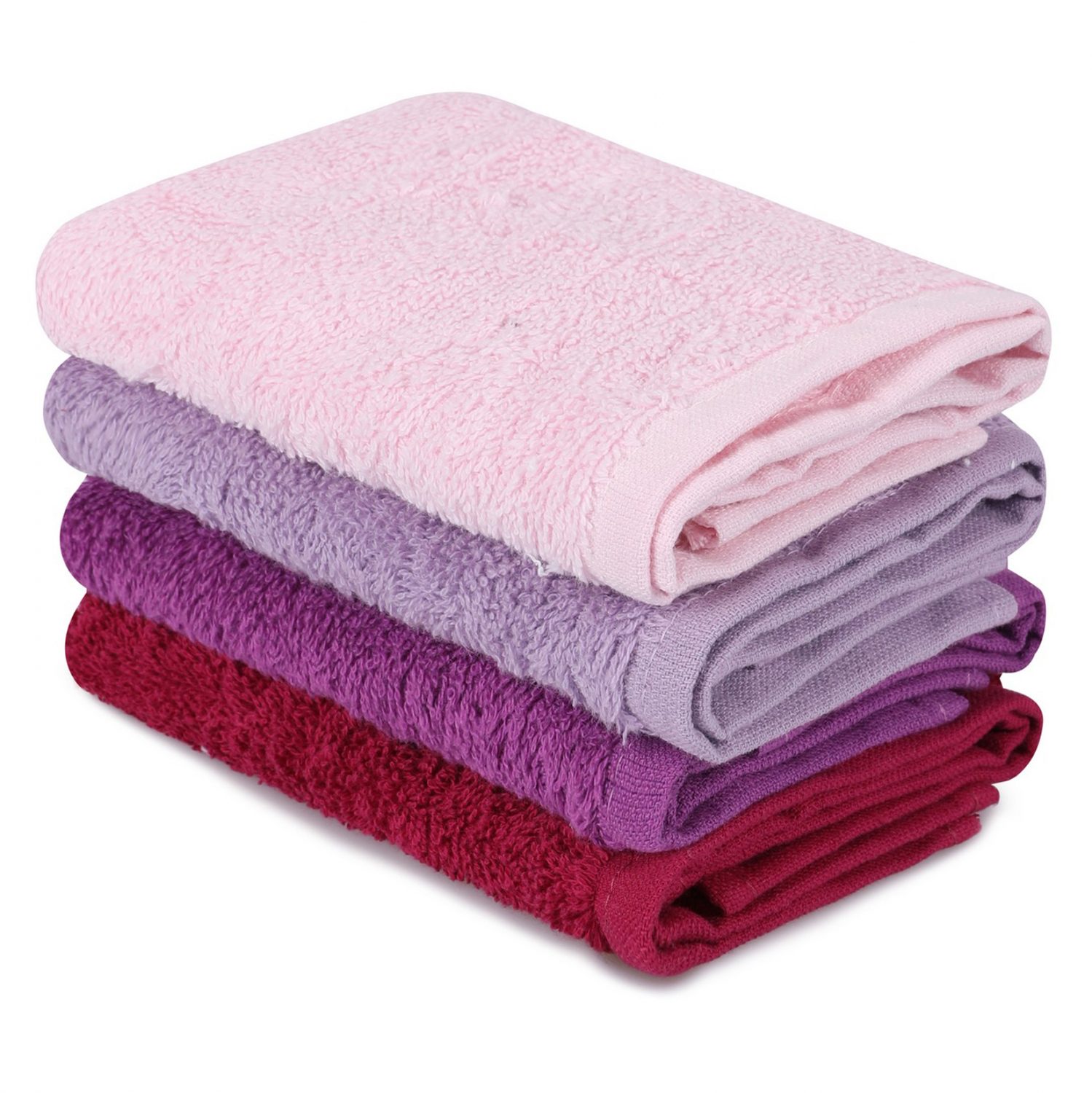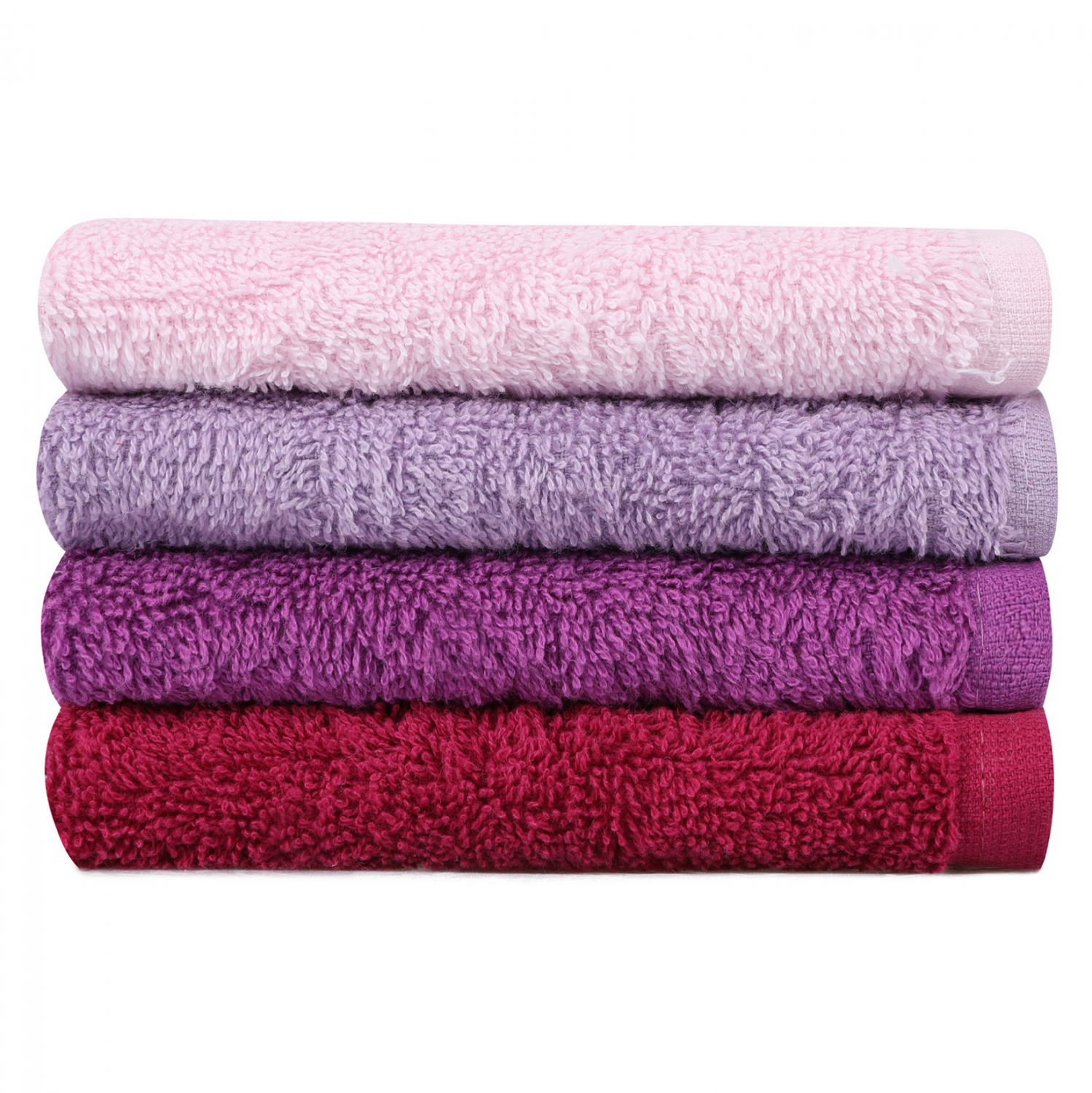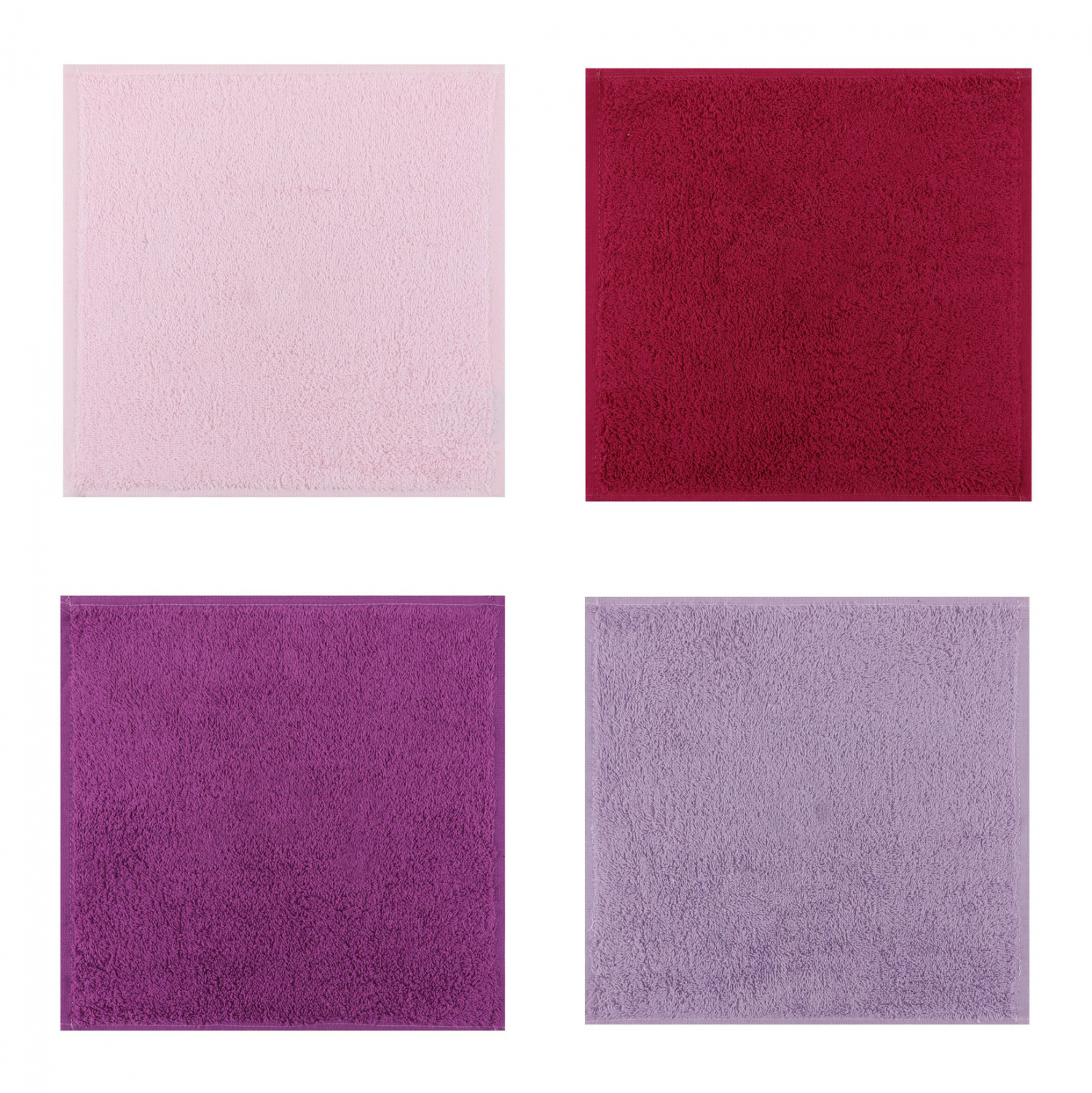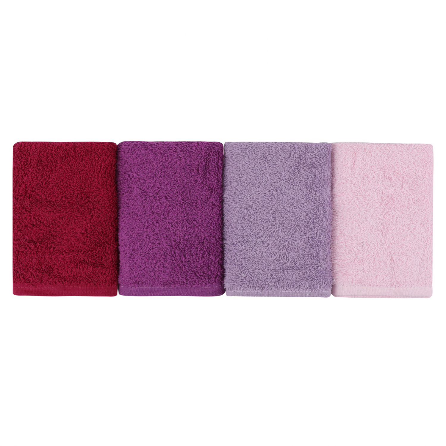 This is a set, made of 100% cotton, 480gsm, in red, purple, lilac and pink with a case in white.