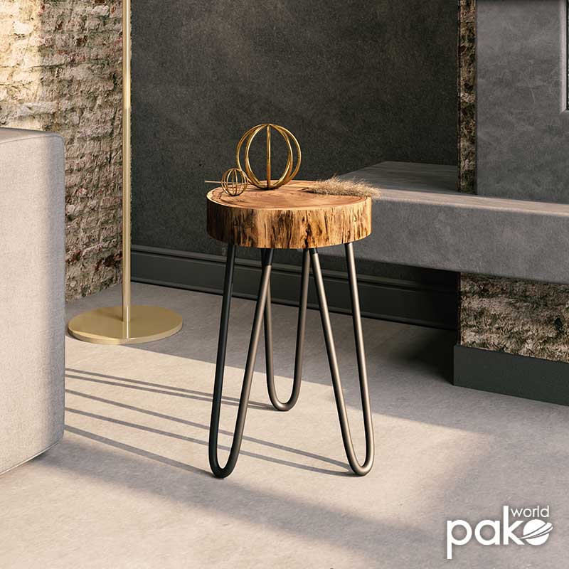 Click Here to download the Product Assembly Instructions.Side table Tripp pakoworld solid wood table 6.5-7cm walnut-legs black 32x30x47cm For those of you who love industrial design in the space and are looking for the warm shades of solid wood in combination with black metal, the Tripp series will excite you.An impressive decoration proposal, ideal for the home or office that will creatively renew the aesthetics of your spaceThe surfaces follow the irregular shape of natural wood.Technical Specifications: Made of solid wood ( 6.5-7cm) and metal. Available in natural-black metal. Product Dimensions: Length: 33 cm. Depth: 30 cm. Height: 47 cm. Material Information: Solid Wood: Solid wood is derived from the whole trunk of a tree, without pieces or surfaces containing synthetic materials. It is widely used in the construction of furniture, flooring, parquet, doors, windows, and other constructions. It has natural homogeneity and appearance, giving it a refined look. It is very durable and withstands use and wear over time. It also withstands weight and pressure without suffering serious damage. Metal: Metal is widely used in furniture construction, offering several advantages over other materials. It is extremely resistant to wear, ideal for furniture intended for daily use in a demanding environment. It maintains its shape and structure perfectly, ensuring stability and longevity. Besides the properties mentioned above, metal can also have other characteristics, such as antimicrobial action (copper) or superconductivity (molybdenum).Maintenance Instructions: Solid Wood: Remove dust and stains from solid wood using a soft damp cloth or a soft brush. Avoid exposing solid wood to direct sunlight, as this may cause colïr alteration and damage to the wood. Metal: For any indoor metal, dusting or wiping with a damp cloth regularly is recommended. However, for outdoor metal furniture, follow these steps: For extended protection, apply protective cream, easily available in stores, to your metal furniture. If your furniture is processed and painted with powder-coating, it is very durable and can be cleaned easily with a damp cloth. If your metal furniture is not powder-coated, you need to be more careful and keep it away from water and humidity. You can cover them with special covers and, if possible, place them indoors during winter. If you notice rust, remove it with turpentine, then apply anti-rust varnish before painting the surface with oxidation-resistant paint. Remarks: The product is delivered unassembled, in factory packaging, with a detailed assembly guide. The color shade of the product may slightly differ from the photographic representation on your screen.
